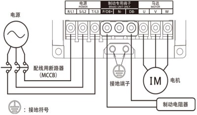 為了適應(yīng)CE標(biāo)記的要求,變頻器的電源輸入端必須設(shè)置過電流、短路以及漏電的保護(hù)設(shè)備。