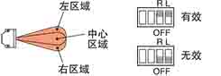![]() 此開關(guān)表示檢測(cè)區(qū)域選擇由DIP開關(guān)或外部輸入進(jìn)行。 |