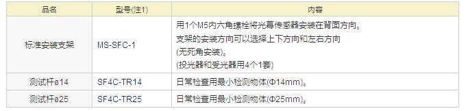 MS-SFC-1(標(biāo)準(zhǔn)安裝支架):1套、 SF4C-TR25(測(cè)試桿):1根 |