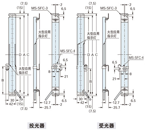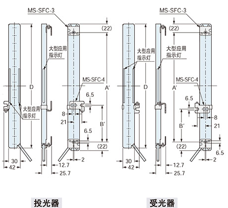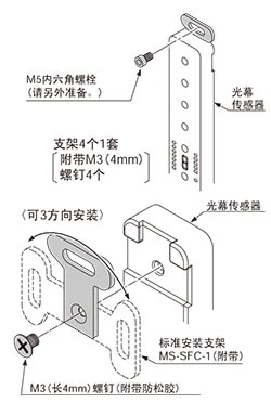 用于在中間部分固定光幕傳感器。 將多功能支架MS-SFC-3(另售)用于SF4C-F55(-J05)、SF4C-F63(-J05)、SF4C-H28(-J05)、SF4C-H32(-J05)時(shí),請(qǐng)務(wù)必購(gòu)買。 (投光器和受光器用2個(gè)1套) |