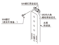 將區(qū)域傳感器NA2-N系列換為SF4C系列時(shí)使用。 沿用NA2-N系列的安裝加工孔。 也可以使用M6內(nèi)六角螺栓在中間進(jìn)行安裝。 (投光器和受光器用4個(gè)1套) |