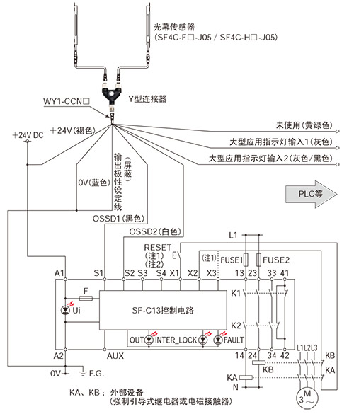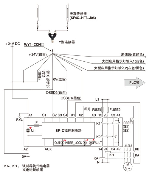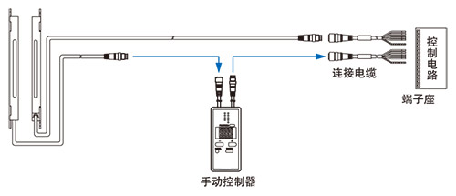 ■使用手動(dòng)控制器SFC-HC,可對(duì)3套光幕傳感器進(jìn)行跨接配線(注1)