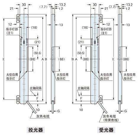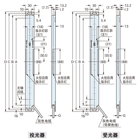 (注1):檢測(cè)距離是投光器和受光器之間的可設(shè)定范圍。