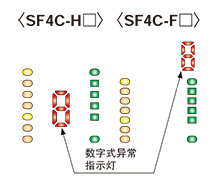 SF4C-F□的情況下,下圖所示數(shù)字式異常指示燈(紅色)的位置不同。