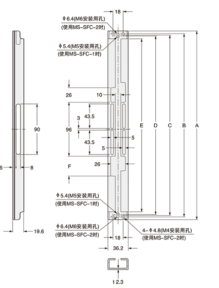 下圖所示為已安裝多功能安裝支架MS-SFC-3(另售)多功能中間支撐支架MS-SFC-4(另售)后的狀態(tài)。