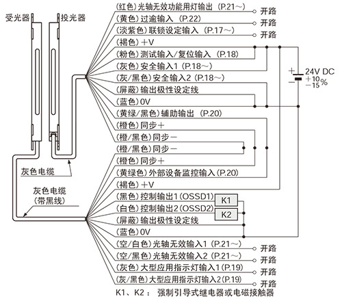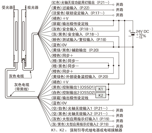 | 電纜延長(zhǎng) | 使用0.2mm2以上的電纜時(shí),投光器和受光器的全長(zhǎng)均可延長(zhǎng)至40.5m(注11)(注12) | ||