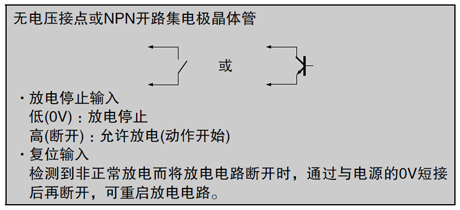 與0V短接:停止放電 斷開:允許放電(動(dòng)作開始) |