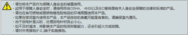 | 指示燈 | 放電故障(紅色)、風扇故障(紅色)、電源(綠色)、放電(綠色) | |