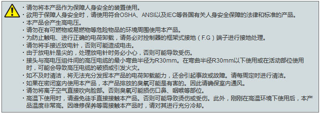 | (注4): | 也備有高電壓電纜1m型/2m型。高電壓電纜1m型/2m型的放電頻率為50Hz/30Hz/20Hz/10Hz/5Hz/1Hz。詳情情況,敬請(qǐng)垂詢。 |